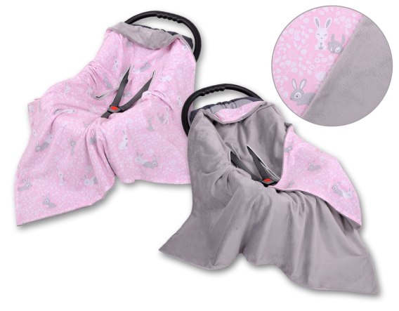 Duży otulacz dla niemowląt do fotelika nosidełka wózka dwustronny - króliczki różowe