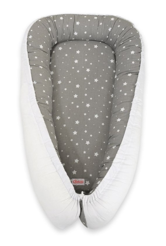Kokon niemowlęcy dwustronny kojec otulacz Premium BOBONO- mini gwiazdki białe/ biały