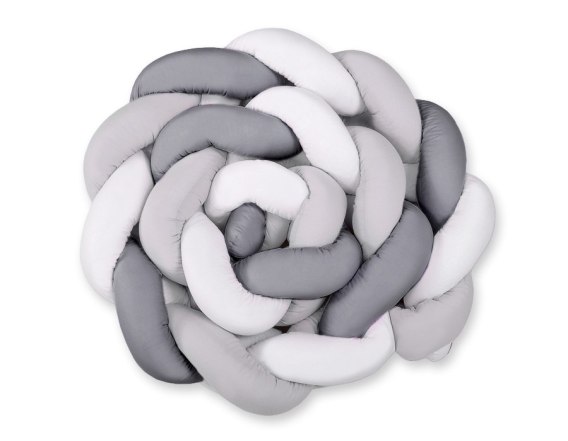 Ochraniacz warkocz pleciony do łóżeczka XXL - biały-szary-antracyt