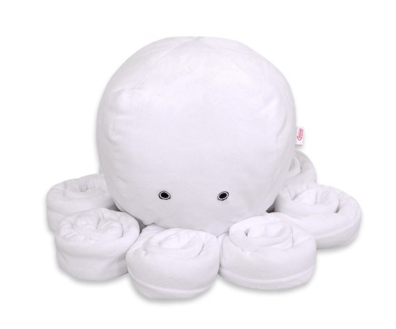 Wykonana jest z miłego w dotyku, miękkiego i delikatnego minky. Oczy ośmiornicy starannie wyhaftowane. Wypełnienie przytulanki to specjalnie atestowane włókno ECOFILLBALL. Są to cienkie i miękkie włókna uformowane w drobne kuleczki z dodatkowymi kanalikami powietrza. Dzięki specjalnej technologii i produkcji kuleczki te są puszyste i sprężyste, a przy tym w dotyku są miękkie i delikatne jak puch, zapewniają odpowiednią cyrkulację powietrza.