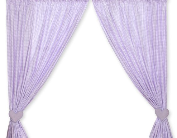 Piękny komplet zasłonek, szarfy z ozdobnymi serduszkami do związania po bokach. Wykonane z tkaniny bawełnianej. Góra zasłonek obszyta taśmą do łatwego i równego zmarszczenia. Idealnie uzupełniają pokój dziecięcy tworząc harmonijną całość z pościelą na łóżeczku.